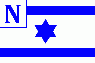 The flag was white with a centred blue 6-point star between two blue horizontal lines. On white canton was a blue initial "N" separated by thin blue lines.