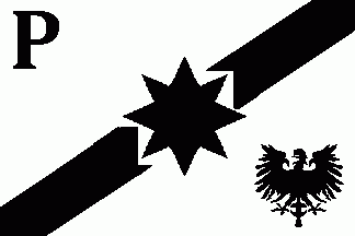 The white flag was parted by a black bend sinister, on its centre superimposed by a black 8-point star. On upper hoist corner was a black initial "P". On lower fly corner was a black Prussian eagle.