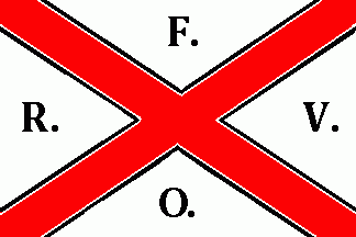 The white flag was parted by a red saltire cotized white-black. On every quarter were black dotted initials as follows. "F." (top), "R." (hoist), "V." (fly) and "O." (bottom).