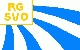 It is a white flag divided by four light blue, embowed fields, emerging from the upper hoist corner. The white canton has a golden fimbriation and an inscription "SVO" of the same colour.