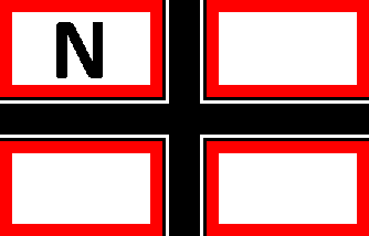 The white flag was parted by a centred black cotized cross. Every quarter was fimbriated red. On upper hoist quarter was an additional black initial "N".