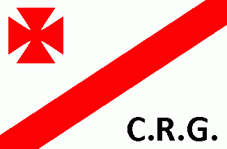 The white flag was parted by a red bend sinister. On upper hoist quarter was a red cross patty, on lower fly quarter a black inscription "C.R.G.".