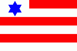 It was a 6-stripes flag parted by alternating red and white horizontal stripes. On white canton was a blue 6-point star.