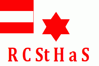 The white canton was parted by a thin red centred cross with red inscriptions as follows: "R"(upper hoist), "C"(upper fly), "H"(lower hoist) and "S" (lower fly).
