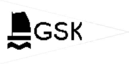 The pennant reported 2014 was purple with white inscription "Gjøl Sejlklub" (see right image above). The current pennant (see left image above) is blue, shifted to hoist is a blue trollĀ“s face lined white with white hair and an embowed white inscription "GSK" below. Gjøl is located west of Aalborg on the Limfjord´s northern bank. The troll face is alluding to the Troll Hills (Danish: Trolde Højene), a local activity park.