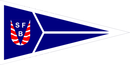 At hoist ws a white inscription "SF" over "B" flanked by two sails of red and white.