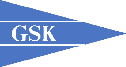 It is a blue pennant with white inscription "GSK" between two thin horizontal white lines.