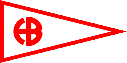 The pennant is white fimbriated red with a red logo, of connected initials "HB" all put into a circle shape. The guild is based in Odder.