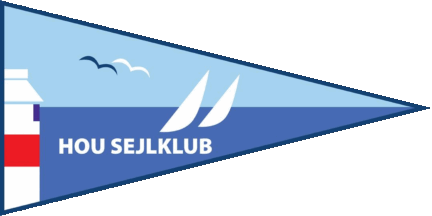 The pennant is horizontally diviedd of light blue over dark blue. On upper half are a dark blue and a white seagull. On lower half is a white inscription "HOU SEJLKLUB". On centre are two white sails crossing the line of partition. At hoist is a couped white lighthouse with a red ring. Hou Havn is located in Odder. The club is based in Hou Havn in Odder.