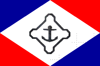 Rgistered ships are allowed to fly a special flag (42 cm x 63 cm, price 40 euro in 2007), made of a white diamond defined by blue and red triangles (upper and lower hoist, respectively) and red and blue triangles (upper and lower hoist, respectively); in the centre is placed a black emblem consisting of the groundplan of a fortress, in contour, enclosing an upright anchor. The diamond's points touch the flag's edges.