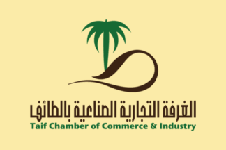 The current flag of Taif Chamber is white with the logo and name. A previous flag was sand color, with a different logo and full name of Taif Chamber of Commerce and Industry.
