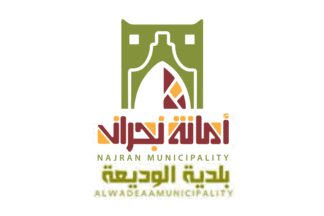 The flag of Al Wadiah in Najran Province is white with the logo centered.