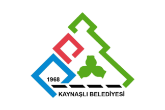 The flag of Kaynaşlı (photo) is white with the municipality's emblem, placed inside a ring, in the middle. "Belediyesi" means "Municipality".