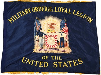 A blue-field flag of the "Military Order Of The Loyal Legion of the United States" (MOLLUS) is the first and oldest Civil War fraternal organization in the United States. It was founded on April 20, 1865, (less than a week following the assassination of Pres. Lincoln on April 15) by former Civil War commissioned officers. Its website at https://loyallegion.org