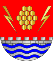 Flag of Chénens, Switzerland; Arms of Ourém, Portugal; Flag of Elgg, Switzerland