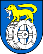 The term for a representation of the large circular stone used for the grinding of wheat or other cereal by water- or windmill, and usually (but not invariably) shown with a square or notched hole in its centre and sometimes radiating ridges – a mill-stone, grind-wheel, grindwheel or grindstone – see waterwheel (also millrind and windmill).