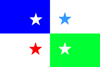 blue-white-white-red, with a white star, a celestial blue star, a red star, and