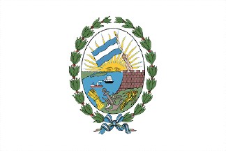 • In the lower field on dexter an island shown in full and the coasts of another two islands; in the middle river Paraná sailed by a sailboat and a steamboat, ending in the sinister part in a bastion standing on a precipice, with three cannons on the crenels and an arm raising the national flag up to the middle of the shield.