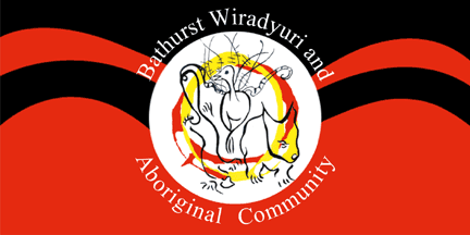 Aboriginal elder Dinawan Dyirribang presented the flag, bearing the words Bathurst Wiradyuri and Aboriginal Community, to the city. He explained it contained three totems significant to this area: the lyrebird, which is a speaker of many languages; the platypus, which is unique because it was created from the water rat and the duck – and so reflects our uniqueness; and the wombat, who, once he sets his mind on something, will not be deterred. The flag also contains the colour black for the Aboriginal people, red for the blood spilled, the sun which is the giver of life, and lines representing the river that flows through country and the earth of the Bathurst plains.
