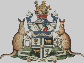 The Shield's supporters are two Kangaroos, another very Australian symbol, which were also very plentiful in the municipality prior to modern urbanisation. Below all of this is a Scroll with the motto, "DOMINE NOS DIRIGE" ("Lord Direct / Guide Us"). These Coat-of-Arms were in use until the April 1979.