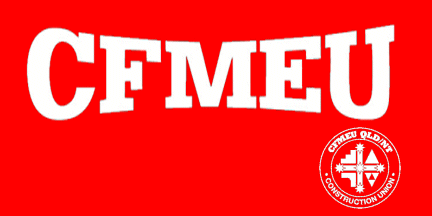CFMEU in large white letters, compressed in the middle, centered on a black