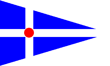 The burgee of the club is blue with a white cross and a blue disk placed in the middle of the cross.