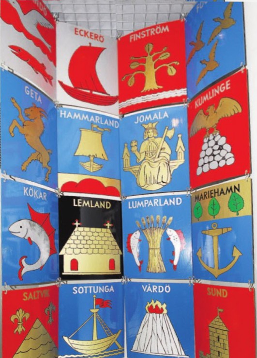 The newspaper webpage at https://www.alandstidningen.ax/ledare/ensidig-bild-kommunerna (requires login) reported on 29 October 2016 emblems for 16 communities on the Åland Islands:
