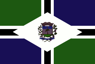 A black centred upright cross, fimbriated white, on a dark green field in the 1st and 4th quarters, dark blue in the 2nd and 3rd quarters; overall a white lozenge bearing the municipal arms.