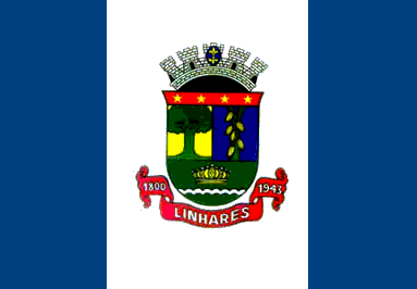 Keywords: espirito santo | linhares | triband: vertical (blue | white | blue) | coat of arms |