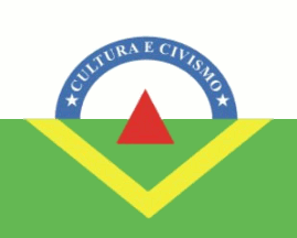 A white over green bicolor, a small red triangle centred, arched above it a blue band, bearing CULTURA E CIVISMO and two stars in white, and below it a large yellow V extending to the outer edge of the blue arch.