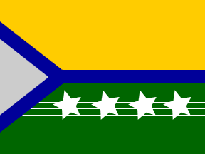 The flag is dark green over golden yellow with a dark blue pall overall, its