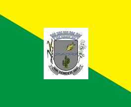 Divided per bend reduced, yellow over green, with the municipal shield in the centre in a white rectangle.