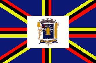 The flag is one of Lauro Ribeiro Escobar's standard designs, a series of progressively smaller triangles based on the hoist forming pointed chevrons