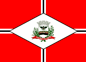 Our municipality created its flag by law in 1936. Its colors are the same as those of the flag of the State of São Paulo: red, black, and white. The flag of the municipality is formed by a red rectangle divided per cross by white and black stripes, upon which, in the center, is a white lozenge and within it the coat of arms of the city.