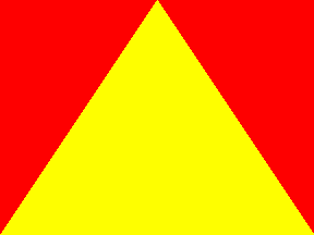 to the arms: a yellow triangle (based on the bottom of the flag) dividing the