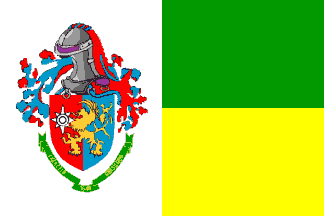bottom. The fly is divided green over yellow to denote the commander's rank as