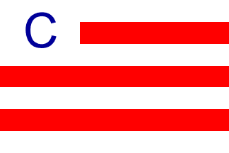 The flag shows 7 white and red horizontal stripes with a blue "C" in a white canton. The C stands almost certainly for Coutinho, a relatively common Portuguese surname.