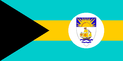 Nassau, the capital of the Bahamas. It shows the flag of the