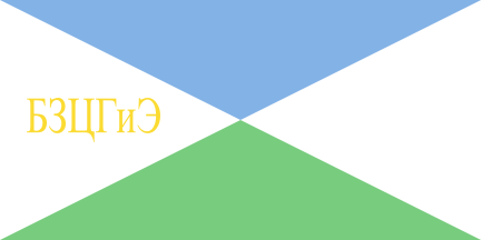 Flag: Rectangular banner, which is divided twice diagonally, the upper part - blue, the lower - green, the side segments - white. Registered in the State Heraldic Register on 05.05.2004. Registration number B-399.