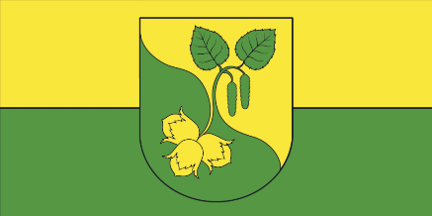 The military village of Bolbasovo, formerly known as "Military Base - 20" during the Soviet era, was granted a coat of arms and flag on 28 February 2011. The arms are a "Iberian style" shield divided per fess with red on the top and blue on the bottom. The red section has silver pilot wings, surmounted by the Red Star roundel of the Soviet Air Force. The blue section has a gold and black hunting horn. This arms is placed on a 1:2 ratio flag, whose background is counter-charged with the colors of the coat of arms.