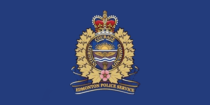 The new police flag is similar in design to the municipal flag with the removal of the supporters which flank the crest – an explorer in a fur hat holding a rifle and Athena, the Goddess of Wisdom. A rising sun represents long hours of sunshine during the summer, wings for Edmonton’s aviation history and a wavy blue line representing the North Saskatchewan River. Wild roses on the flag represent the official flower of Alberta.
