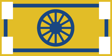 This flag has been in use since the Remington Carriage Museum was established in Cardston. It is a depiction of the Town logo on a white field. When the Carriage Museum was established, the Town logo was updated to include a carriage and two horses, representing the Museum and the heritage of horse drawn carriages in Cardston. Examples of flags that Cardston flew prior to the introduction of the Horse and carriage can been seen in the photo gallery at the bottom of this page. This flag has been in use since sometime in the early to mid 1990s.