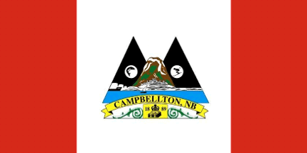 The flag of Campbellton is a Canadian Pale with a double-triangle shield