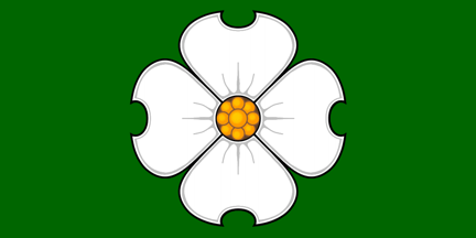 Green and gold are Norfolk’s colours, representing its agricultural base. The Eastern dogwood (Cornus florida) is the city’s flower. It appears on the city’s coat of arms and on the arms granted to the former Town of Simcoe and the former Norfolk Township, both since amalgamated into the city. The nine golden yellow seeds in the centre represent the county government with eight councillors and one mayor. The notches on the dogwood flower petals symbolize the four former municipalities now composing the city (Norfolk, Delhi, Simcoe, and Nanticoke).
