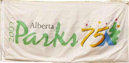 The year 2007 marked the 75th anniversary of the Provincial Park System in Alberta. To commemorate this event, a flag was designed which features a stylized version of a teepee under a sky of multi-colored stars along with the words "2007 Alberta Parks 75".