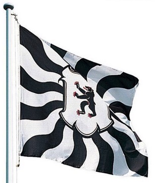 • Oldest known banner of Appenzell (b/w), around 1401 (not earlier), with sewn Schwenkel. Location: Swiss National Museum, Zurich (source).