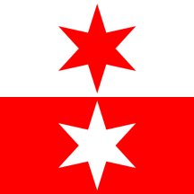 Per fess Argent and Gules two Mullets in pale counterchanged.