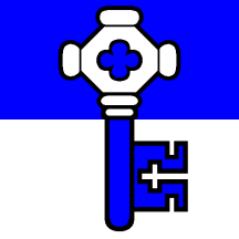 Per fess Azure and Argent a Key palewise counterchanged the wards in