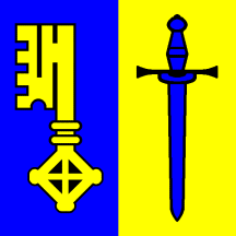 Per pale Azure a Key Or and of the last a Sword pointing to base of the first.