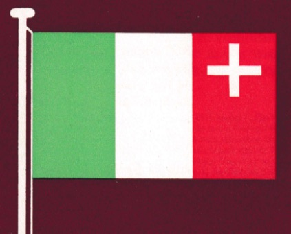 The colors are based upon the national colors of the herald of Neuchâtel, green and white the colors of rebellion and red and white, the colors of the Swiss flag. The cross was added in 1870 to distinguish the flag from the Italian flag. The flag of 1350 (or, on a pale gules, three chevronels argent) was discarded in 1848, but there have been three unsuccessful plebicites to reintroduce this flag (1921, 1931, 1954).
